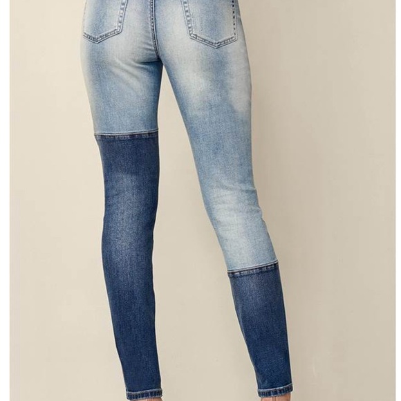 These trendy patchwork jeans assure you stand out! The retro look of multiple washes plus distressing on the legs give it a roughed-up, lived-in edge that goes with you anywhere. Mid-rise with a skinny leg, this 5-pocket classic-fit pair boast a fan-favorite silhouette with a definitely cool upgrade.