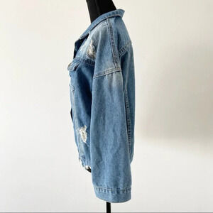 Distressed Raw Edge Denim Jean Jacket