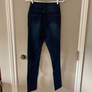 Dark blue high waisted skinny jeans with rips. No tags attached but never worn, excellent condition.