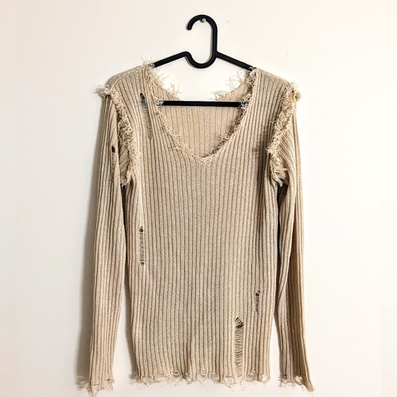 Distress-style top, sadly I don't know the brand but it's in mint condition and fits sizes S-M.