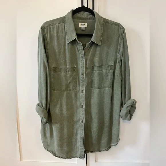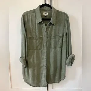 Distressed aesthetic and tencel material. Button down size XL. Cute with sleeves rolled as well.