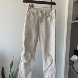 Distressed White High Waisted Levi Wedgie Jeans
