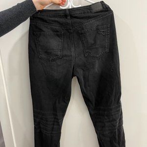 Distressed black american eagle high rise, ripped jeans, size 8, standard length, 4-way stretch waistband