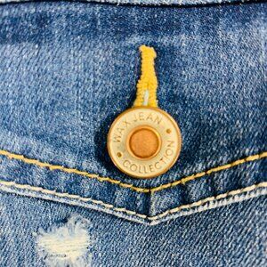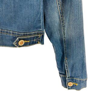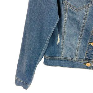 WAX Jean Distressed Button Denim Jean Jacket in medium Wash Blue size medium for women