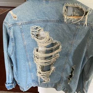 Oversized jean jacket shredded in the back.