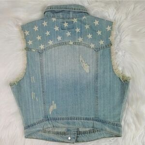 Distressed denim vest with USA motif