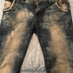 Distressed faded blue jeans