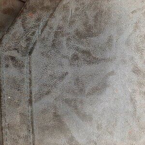 Unique looking bag in like new condition! Has a distressed look, and is synthetic leather. Lots of compartments and slots to hold cards. The colour is a cool bluish grey. Measurements in photos