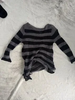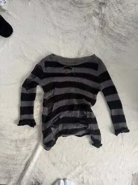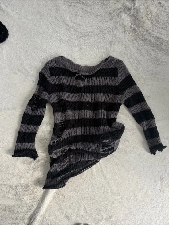 Distressed oversized black and grey stripped sweater