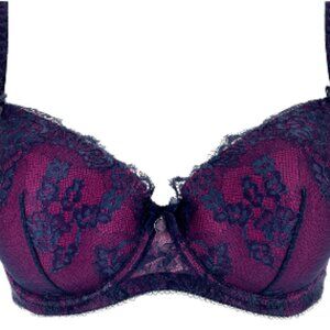 Dita Von Teese Savoir Faire Curve Bra Navy Blue Magenta Pink lace NWT size 44DD