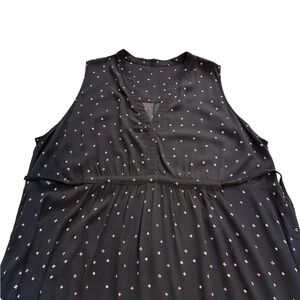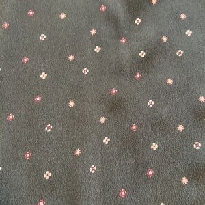 Really nice sleeveless shirt dress with ties in the back. No fabric tag, but the fabric feels like a rayon/polyester blend. The fabric lays very nicely, and the ditsy floral pattern is so cute! Looks great with the striped cardigan that is also for sale in my closet - the colours in the flowers match perfectly with the colours in the cardigan.