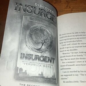 Divergent book by Veronica Roth. Features a striking cover with fiery orange and blue tones.