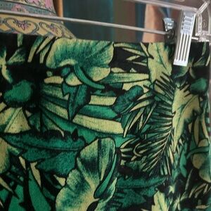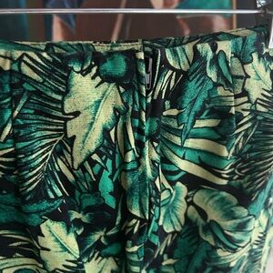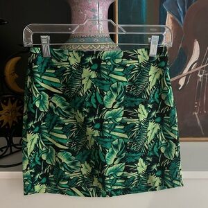 Vibrant green leaf pattern. Mini length. Perfect for casual outings. Waist 26" Length 15"