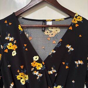 Divided| H&M| Black Jersey Knit Shorts Romper w/Yellow Floral Pattern Sz 8