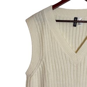 Divided H&M Cream Sweater Vest Ribbed V Neck Split Hem Acrylic Small Oversized