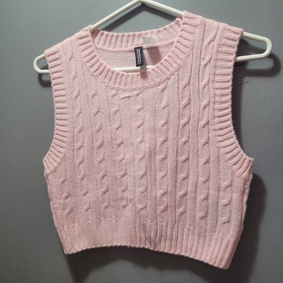 Divided H&M Pink Cable Knit Sleeveless Crop Top XS