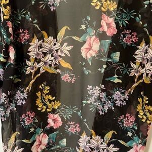 Divided| H&M| Pretty Floral on Black Multicolour Sheer Kimono Wrap Sz S
