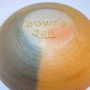 Divided Pottery Dish Bowl Blue Signed Dowe's 2011