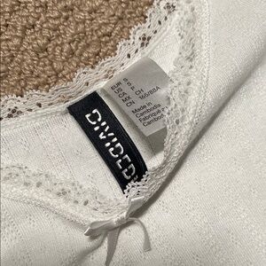 This fitted white camisole from Divided features a ribbed texture and a sleeveless design, perfect for a sleek and stylish look. The lightweight, stretchy material ensures comfort and a flattering fit, making it an ideal choice for layering or wearing on its own.