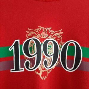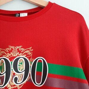 Divided by H&M | 1990 Gold Lion Print Crop Long Slv Crewneck Pullover Top Red M