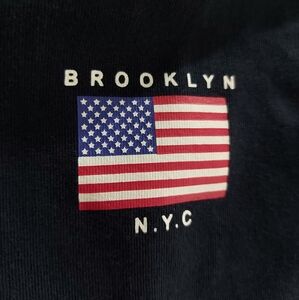 Features an American flag in the middle that says Brooklyn 🇺🇲 N.Y.C print across the front chest.
