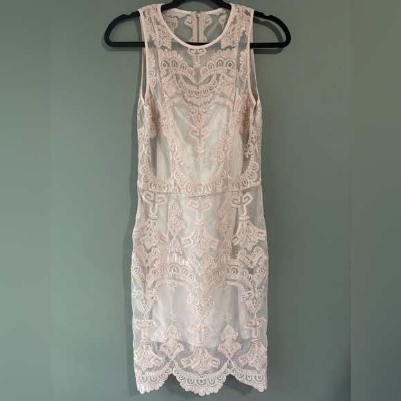 Divided by HM, size 8, light pink sheer mini body con dress with slip, zipper