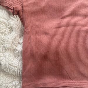 Chic ribbed tee in coral. Soft and comfy. Ideal for everyday wear!