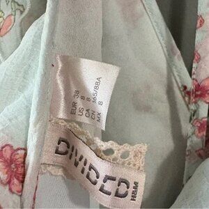 Divided size 8, mint green floral halter style mini dress with built in slip