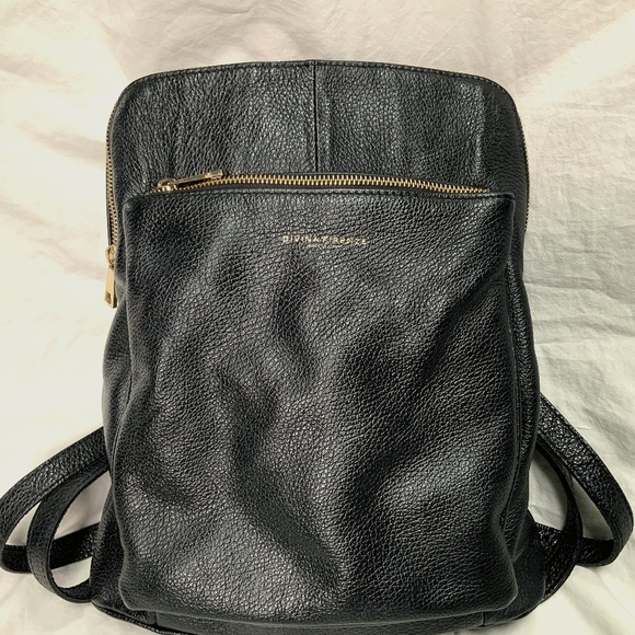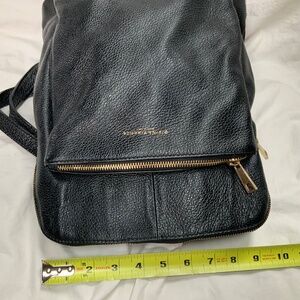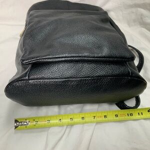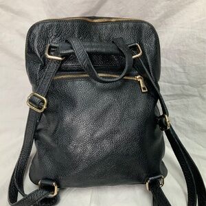 This made-in-Italy backpack is in excellent, clean condition. The leather is soft and thick, and there are two zippered pockets on the outside, as well as one inside zippered pockets and two cellphone-type pockets.