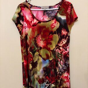 Divine Logic Tunic with colourful floral print, sheer hem with split sides