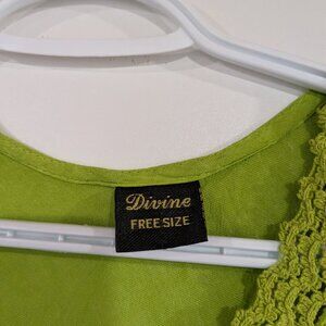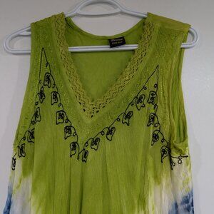 Divine Tie Dye Lace Trim Embroidered Crinkle Dress White Green Blue One Size
