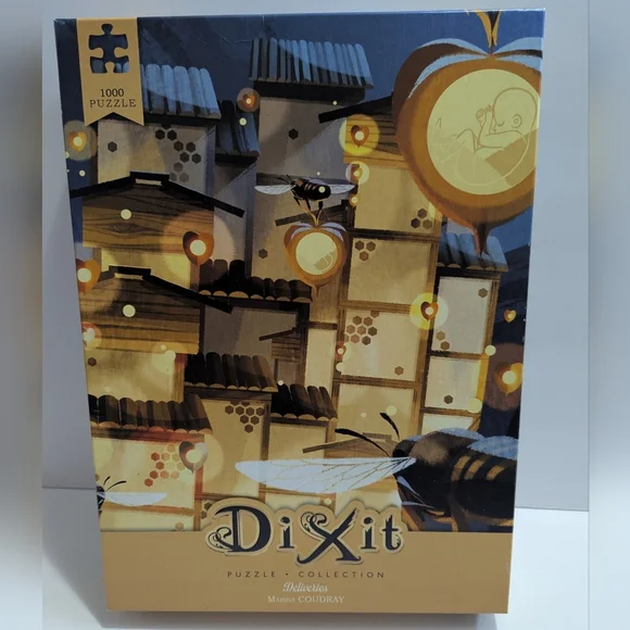 Box not sealed, but puzzle bag never opened. Comes with one Dixit card.
