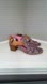 Sling-back with a decorative buckle and hidden velcro fastener. Cushioned insole. Multi color paisley pattern.