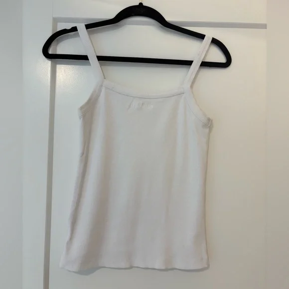 Djerf Avenue - The Daily Tank Top is made from a thick ribbed organic cotton fabric. It has thin straps and a fitted silhouette. Fits true to size. Great condition.