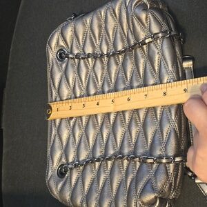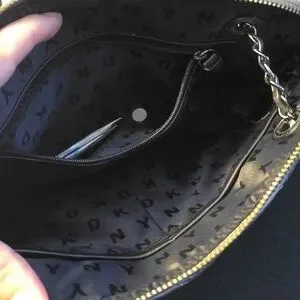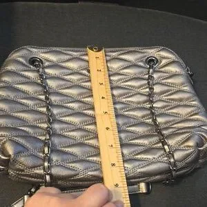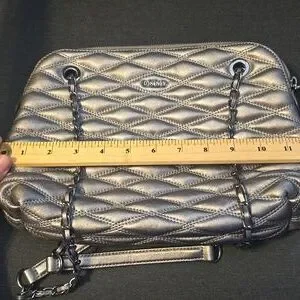 Stylish DKNY crossbody with a metallic quilted finish. Perfect for adding elegance to any outfit.