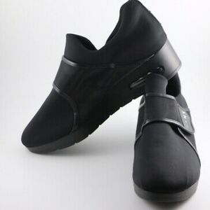 Women’s DKNY Wedge Sneakers With Hook and Loop Strap Mesh. Great preowned ondition in black, size 10.