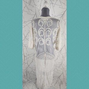 Do Everything in Love Ivory Floral Lace Open Front Long Cardigan