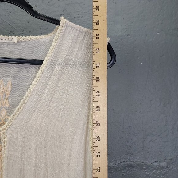 Do Everything in Love Vest Women's Lightweight Fringe Knit Duster Embroidery Tie