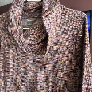 Beautiful Natural Reflections knit pullover sweater featuring a soft draped cowl neckline, cozy textured knit fabric, and a relaxed easy fit. The multi-tone heathered coloring gives this sweater a laid-back boho feel that’s perfect for casual wear, travel, lounging, fall layering, or everyday comfort.