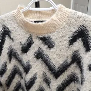 cozychic winterstyle fallfashion chevron knitwear ombrestyle neutraltones blackandcream boutiquevibes softknit streetwear casualoffice minimalstyle modernclassic oversizedlook layeringpiece coldweatherstyle sweaterseason