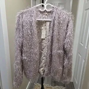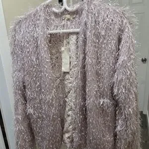 Brand new with tags Mystree plush lavender teddy jacket in a soft, textured fuzzy knit. Features an open front design with a relaxed silhouette that’s perfect for layering over tanks, tees, or lightweight sweaters. The dreamy lavender tone adds a feminine, cozy-chic touch while keeping your outfit effortlessly elevated.