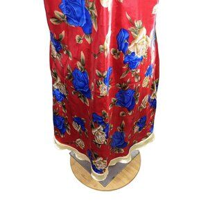Womens Silky Sleep Dress Nightie Size Large Floral Roses Bow Ruffle Hem Gold Red Blue Adjustable Straps