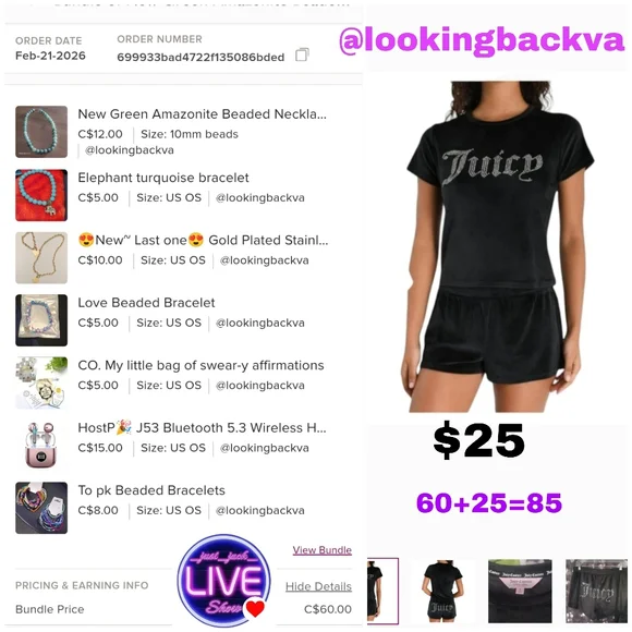 posh show purchases, prizes, and added juicy Couture set black in LG