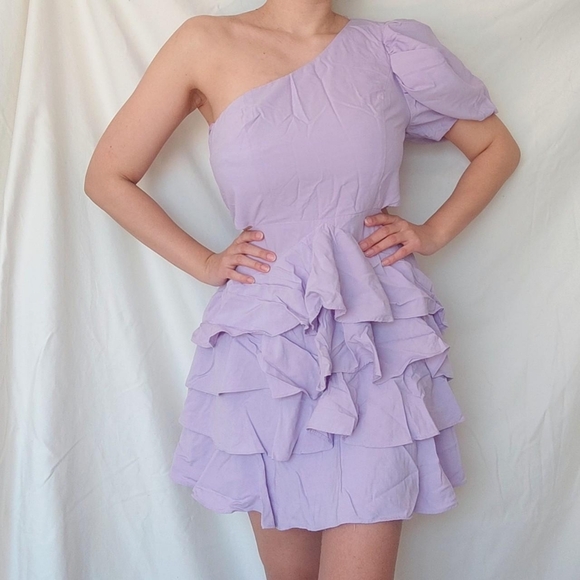 Do+Be Lilac Ruffled One Shoulder Mini Dress