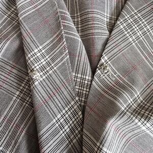 Plaid wrap top with wide tiered bell sleeves and wide belt, v-neck with snap closure. In good used condition, snap is a bit loose. Material tag has been removed