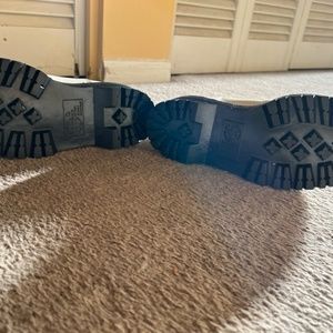 Ankle-high leather Chelsea boots featuring signature welt stitching in yellow, logo-woven heel loop and Airwair™ treaded rubber platform sole. Slip-on silhouette with tonal elastic gussets and round toe.