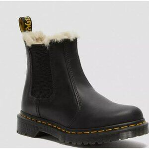 The product is a pair of Doc Marten Women’s Faux Fur Lined Black Chelsea Boots in size 9. These stylish and trendy boots feature a cozy faux fur lining, making them perfect for cold weather. The classic black color and Chelsea style make them versatile for various outfits, while the Dr. Martens brand ensures quality and durability. Perfect for women looking for a fashionable and comfortable boot option.
