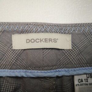 Dockers Ladies Size 12 Grey Plaid Wide Straight Legs Capri Pants