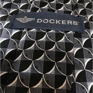 Dockers Tie Black & Gray Geometric Pattern Stain Resistant Necktie