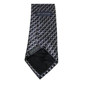 This Dockers tie features a sophisticated black and gray geometric pattern, ideal for professional settings. Treated with DuPont Teflon, it offers stain resistance, ensuring a polished look throughout the day.